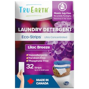 Tru Earth Folhas compactas de detergente para roupas a seco - até 64 cargas (32 folhas) - sem parabenos - detergente sem líquido Eco-Strip autêntico, folhas de viagem - brisa lilás