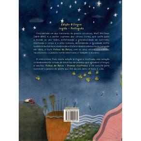 A nVersinho traz, nessa edição bilíngue e ilustrada, uma seleção de excertos de poemas do escritor Walt Whitman. Os poemas combinam temas que refletem a vastidão do universo, o milagre da vida e a consciência da igualdade entre as pessoas. FOLHAS DE RELVA POEMAS ILUSTRADOS é voltado tanto para as crianças, que terão a oportunidade de conhecer a poesia de Whitman, quanto para o público adulto que se sentirá abraçado pelos versos.