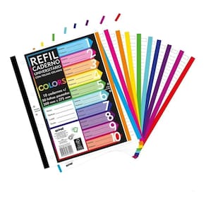 O produto 'Folha Fichário Bloco C/500 Fls Coladas Refil Color 4 Furos' é um item essencial para estudantes universitários, escolares e profissionais. Este caderno universitário da marca Spiral é perfeito para organizar suas anotações e estudos. Com suas bordas coloridas, ele adiciona um toque de estilo ao seu material escolar. O caderno possui 4 furos, permitindo que você o insira facilmente em um fichário.