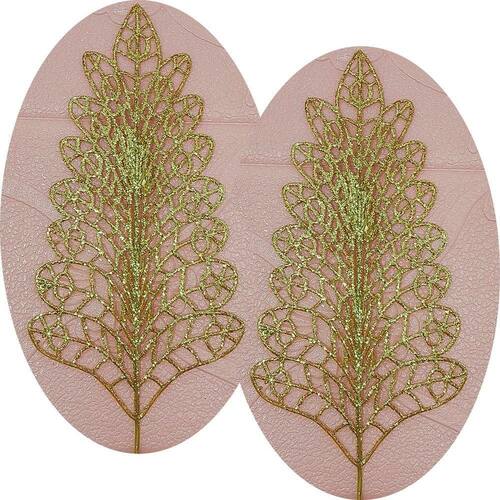 Kit 6 Folhas Com Glitter Dourado de 40x14cm