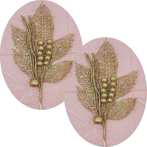 Kit 4 Folhas Com Frutinhas Glitter Dourado de 45x20cm
