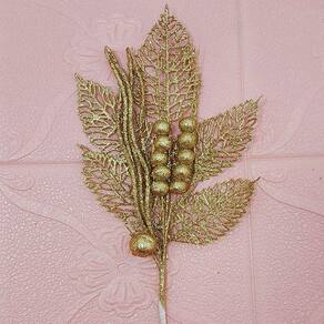 Folhas Flores Enfeite Natal Gliter Dourado De 45cm Kit 4pçs -