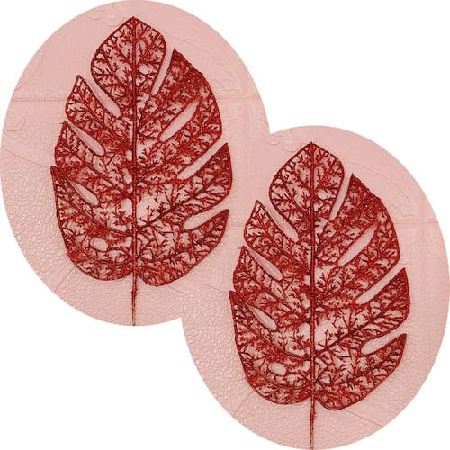 Kit 12 Folhas Com Glitter Vermelho de 35x15cm