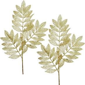 Kit 8 Plantas Decorativas De Natal Com Gliter Dourado De 75cm