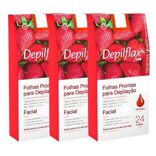 Folhas Prontas Faciais Depilflax Morango 3 CX/ 24 Und cada