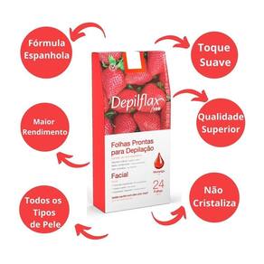 Folhas Prontas para Depilação Facial Buço Sobrancelha Depilflax Morango 24un