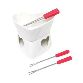 - Dimensões da Peça:-1 Panela: 13 x 12 x 5cm-1 Suporte: 13,5 x 12 x 6,5cm-4 Garfos: 14 x 1,2 x 1,2cm-1 Vela: 4 x 4 x 1,5cm-Capacidade: 320ml- Material: Aço inox,Parafina,PlásticoO conjunto de fondue para foi criado para ocasioes especiais, dispõe de design moderno e prático Perfeito para proporcionar momentos agradáveis com a família e amigos acompanha 7 peças. Prepare fondues de queijo com torradas, chocolate com frutas, carnes com Queijo ou molhos.O produto deve ser aquecido antes do uso, para não gerar choque térmico. Ean: 7896980457827