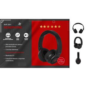 HEADPHONE BLUETOOTH PREMIUM • CANCELAMENTO DE RUÍDO ATIVO • CONCHAS DOBRÁVEIS • CABO 3,5 MM INCLUSO • BATERIA DE 18 HORAS DE DURAÇÃO • ALTA RESOLUÇÃO EM ÁUDIO E PRECISÃO SONORA • ESTRUTURA FLEXÍVEL E ESPUMAS CONFORTÁVEIS PERMITINDO USO PROLONGADO • BLUETOOTH 5.0