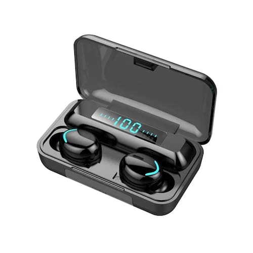 Modelo: F9 Especificação Bluetooth: V5.0; Perfil Bluetooth: A2DP, AVRCP, HFP, HSP Tensão de trabalho: 3,1 V ~ 4,2 V; Tensão de carregamento: 5V-1A; Frequência: 2,402 GHz-2,480 GHz Capacidade da bateria do fone de ouvido: 50 mAh Distância de transmissão: 10 M; Tempo de chamada: 5h; tempo de jogo: 3-5 h; à prova d'água: IPX5; Tempo de carregamento do fone de ouvido: 30-45 min; Tempo da caixa de carregamento: 2-3 h; Sistema de suporte: todos os dispositivos Bluetooth e telefones celulares; Lista de pacotes: 2 fones de ouvido Bluetooth, 1 compartimento de bateria, 1 cabo USB, 1 manual em inglês, 3 tampas de ouvido
