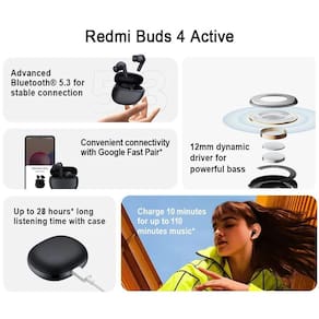 Com uma recarga de apenas 10 minutos, tenha até 110 minutos de uso. Recarregue completamente e desfrute de até 5 horas de reprodução apenas com os fones, ou estenda esse tempo para até 28 horas utilizando o estojo de carregamento. O Buds 4 Active é a escolha perfeita para quem busca qualidade de som, praticidade e funcionalidades extras.