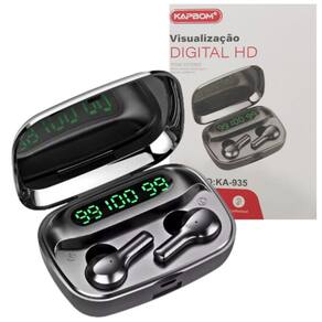 Bluetooth | Controle de volume | Microfone | Sem fioO Fone de Ouvido Bluetooth Digital com Estojo Recarregável KA-935 é perfeito para quem busca praticidade e qualidade sonora. Com design independente e estojo para carregar, você pode levá-lo para qualquer lugar sem se preocupar com fios emaranhados. A visualização digital e o controle por toque facilitam o ajuste das configurações de áudio. Além disso, o fone é confortável e possui microfone, permitindo que você atenda chamadas sem precisar tirá-lo. Com alcance sem fio de 10 metros e compatibilidade com Bluetooth, você pode desfrutar da sua música favorita com total liberdade.
