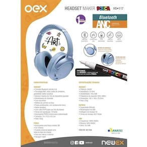Headset sem fio bluetooth 5.0 maker posca oex hs117 azuldescrição:um headset super estiloso para você deixar com a sua cara acompanha uma caneta posca modelo 3m na cor branco para customizar como quiser compatível com qualquer dispositivo bluetooth, possui tecnologia anc que reduz os ruídos do som ambiente durante o uso. Características: - Marca:Oex Especificações Técnicas: -fone de ouvido maker poscaconexão bluetooth versão 5.0 -tecnologia anc: reduz ruídos do ambiente, garantindo melhor acústica -alcance máximo de 10m do dispositivo pareado -atendimento de chamadacom microfone botões de controle no fone -fones acolchoados, com acabamento fosco -haste ajustável com cabo p2/p2 para uso fora da bateria -tempo de reprodução: 10 horas -recarregável via usb -voltagem de recarga: 5v -tempo de recarga: até 3 horas -acompanha uma posca modelo 3m na cor branco Conteúdo da Embalagem: -headset Sem Fio Bluetooth 5.0 Maker Posca Oex Hs117 Azul do Fornecedor 3 Meses Homologação Anatel: 059231811468 Marca: Não Informado