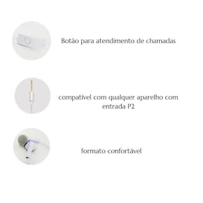 -cabo revestido em TPU mais durável e não faz nó - Plug com detalhes em dourado -controle remoto com botão e microfone - som mais preciso e livre de ruídos -extremidades auriculares ergonômicas