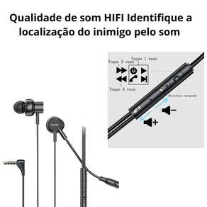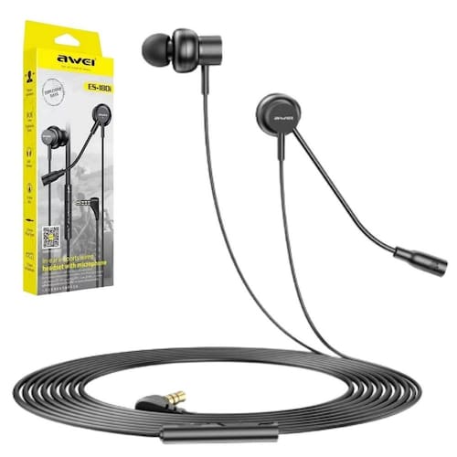 Fone de ouvido para jogos, músicas, reuniões e bate papos que precisam de um bom microfone. AWEI ES-180i Plugue de 3,5 mm com microfone para telefone, computador, videogame estéreo HD Clean Voice e Dispositivos com plug P2 P3 de 3,5mm padrão. Qualidade de som HIFI identifique a localização do inimigo pelo som, e com isolamento de ruído passivo, atendimento / encerramento de chamada, controle de volume, alta definição, Qualidade de áudio, limitação de volume. Fones de ouvido intra-auriculares leves, proporcionando uma experiência de audição envolvente, confortável de usar e bom para seus ouvidos. Esse fone fornece uma excelente qualidade de som com os Drivers integrados de alta qualidade para oferecer graves impressionantes e batidas potentes e detalhadas. Microfone duplo HD - Para Jogos. Além do microfone no cabo ele contra com um microfone extra, para uma melhor captação. O fone é incrivelmente estiloso e tem ganchos de orelha em forma de barbatana de tubarão, que proporciona segurança, conforto e isolamento dos ruídos esternos. Com botão de controle multifuncional, para atender e desligar chamadas, dar play e Stop em suas musicas, alem de contar com o controle de volume no cabo