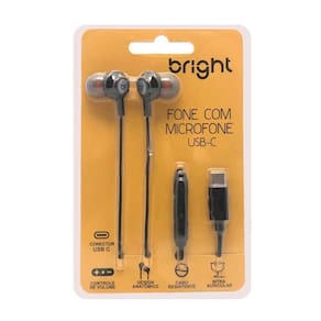 Fone de Ouvido Com Microfone Bright Ghost USB-C Cód.FN574 Utilizar fone de ouvido traz mais qualidade e nitidez no som e melhora a experiência para assistir filmes, jogar e até mesmo para conversas em áudio e vídeo. O fone de ouvido FN574 da Bright possui design anatômico e confortável não causando incômodos, com fone Intra Auricular proporcionando um grave reforçado e isolamento de ruídos externos, ótima qualidade de som e captação de voz. Características:ean: 7897982208066Marca: BrightModelo: Cód.Fn574cor: PretoIntra AuricularDesign anatômicoDrive de 10mmControle de volumeConector USB tipo CFunção de atendimento de chamadas telefonicas Dimensões da Embalagem:Altura: 16cmLargura: 10cmProfundidade: 3cmPeso: 0,050KgGarantia: 12 Meses