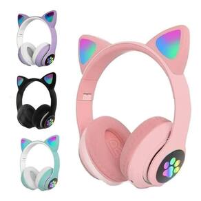 Fone De Ouvido Headset Orelha Gatinho Cat Bluetooth Led Rosa