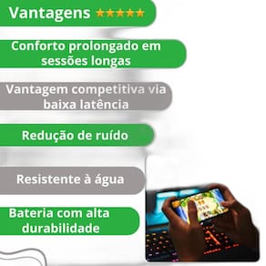 Fone de ouvido gamer tws com alta qualidade de som e microfone direcional Descrição do anúncio: Experimente a adrenalina de mergulhar na cena de outra maneira com os fones de ouvido específicos para jogos, você não perde nenhum detalhe e ouve o áudio como ele foi pensado pelos criadores. Ideal para gamers, estes fones oferecem baixíssima latência de 50ms, garantindo conectividade excelente e sem atraso. Além disso, são perfeitos para o dia a dia, proporcionando som de altíssima qualidade para músicas e um design inovador com luzes de led no fone e na case de carregamento.