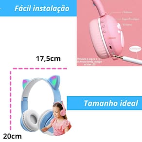 Fone De Ouvido Bluetooth Orelha Gatinho Infantil Rosa Led Rgb Sem Fio