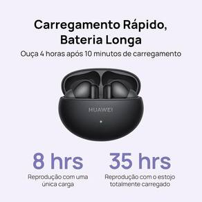 A bateria é outro destaque: com o estojo de carregamento, o FreeBuds 6i oferece até 35 horas de uso total. Além disso, conta com carregamento rápido, proporcionando até 4 horas de reprodução com apenas 15 minutos na base. Essa autonomia é ideal para quem busca praticidade no dia a dia sem se preocupar com recargas constantes.