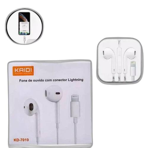 Fone de ouvido kaidi 7010 lightning com fio mic estéreo kaidi kd-7010 771 Fone de ouvido lightning - compatível com i p h o n e kaidi kd-7010 Ao contrário dos fones de ouvido redondos tradicionais, o design dos earpods é definido pela geometria da orelha. Por isso, eles são mais confortáveis para mais pessoas do que outros fones de ouvido intra-auriculares. Os alto-falantes dos earpods foram projetados para minimizar a perda e maximizar a saída do som, o que gera áudio de alta qualidade. O fone com conector lightning também têm controle remoto integrado que permite: ajustar o volume, controlar a reprodução de músicas e vídeos, atender e desligar chamadas tocando o botão. Características do produto: - marca: kaidi - modelo: kd-7010 - comprimento: 1.1 metros - entrada: lightning - microfone - tecla de atendimento para ligações - troca/pausa de músicas - controle de volume - compatibilidade: são compatíveis com os modelos de touch, e i p h o n e que têm conector lightning e com ios 10 ou posterior. - cor: branco Esse modelo não é necessário conectar o bluetooth para o uso. Conteúdo da embalagem: 1x fone de ouvido ligthing kaidi kd-7010 Smart new tech - Kd-7010-x1 Homologação Anatel: 112572013224 Marca: Não Informado Ean: 6980457882302