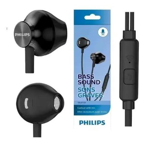 Marca: PHILIPSModelo: TAUE101BK/00Com reforço dinâmico de graves, este fone de ouvido intra-auricular leva música de qualidade aos seus ouvidos confortavelmente.- Drivers do alto-falante de 14,2 mm para graves potentes e som nítidoOs drivers do alto-falante de 14,2 mm de boa qualidade, com ímã de neodímio, fornecem graves potentes e som nítido.- Projetado para encaixe confortável na geometria do ouvidoO design é baseado na geometria do ouvido, para um uso confortável e um encaixe perfeito para todos.- Microfone integrado com botão para atender chamadas que facilita a conversaMicrofone integrado com botão para atender chamadas que facilita a conversa.- Os drivers das Caixas acústicas de neodímio fornecem um som balanceado e puroO neodímio é o melhor material para geração de um forte campo magnético que se traduz em maior sensibilidade em uma bobina de voz, melhor resposta de graves e um som balanceado e puro.CaracterísticasResposta Frequência: 20-20.000hzImpedância: 32 ohmPotência: 5mWSensibilidade: 106 dBDiâmetro Falante: 14,2mmConector: P2Cor: PretoDetalhesComprimento: 1,2mOutrosInformação adicional:- Tipo de fone : IN-EAR.- Conectividade: Microfone embutido.- Sistema acústico: Aberto.