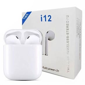 Fone de ouvido sem fio I12 TWS com design ergonômico, isolamento de ruído, Bluetooth 5.0, microfone e controle touch multifuncional.Código de Referência