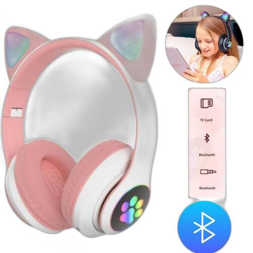Fone Sem Fio Infantil Gatinho Rosa Luzes Orelhas Gatinho