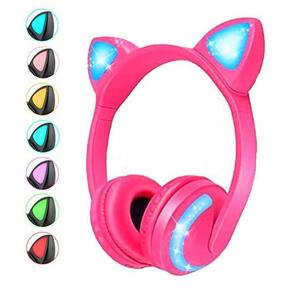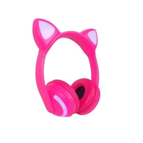 Fone Sem Fio Orelha de Gato Bluetooth com LED 7 Cores Rosa