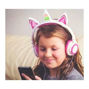 Fone unicórnio com luzes de LED Inova Com Fio Acende orelhas e Chifre (necessário bateria CR2032 - já inclusa) As luzes podem se ligadas ou desligadas Múltiplos modos de iluminação Alta qualidade de áudio com áudio estéreo Fones almofadados Entrada 3.5mm Design dobrável Marca: Não Informado