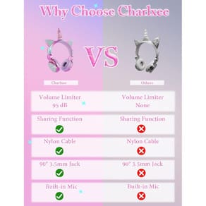 - Seguro: a função de limite de volume de 95 dB e material amigo da pele garantem uma experiência auditiva segura para crianças