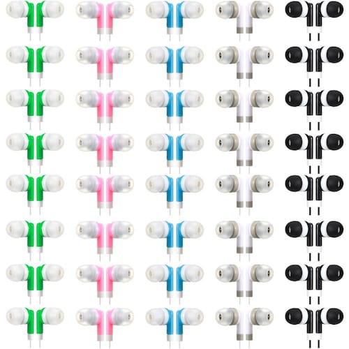 O pacote inclui: você receberá 100 peças de fones de ouvido com fio vêm com 5 cores diferentes, branco, rosa, preto, verde, azul, 20 peças para cada cor, quantidade suficiente para atender às suas diferentes necessidades
