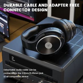 ?Conector duplo removível, sem mais adaptador?Vem com plugues removíveis de 6,35 mm e 3,5 mm de tamanho padrão incluídos. O cabo enrolado em estilo DJ (9,8 pés esticado) chega facilmente da TV ou do aparelho de som até sua cadeira. Outro cabo com microfone de entrada de linha, ligue e converse on-line a qualquer momento