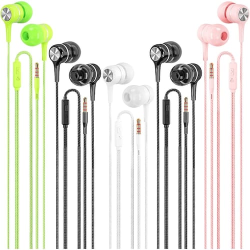 Durante a chamada -Pressione uma vez para atender a chamada e pressione novamente para encerrar a chamada -Pressione duas vezes seguidas para rejeitar a chamada Ao ouvir música -Pressione reproduzir/pausar com 1 clique -Pressione o botão de 2 cliques para a próxima música -Pressione 3 cliques para mudar para a música anterior Você receberá -5* fones de ouvido preto*2 + branco+rosa+verde -2* pontas de ouvido de silicone (M/L) -1* fones de ouvido manuais Tangle Free Design Os fones de ouvido com fio de microfone, não só leves, mas também o cabo dos fones de ouvido tem um design sem emaranhados, não são fáceis de emaranhar, você pode colocá-los facilmente no bolso e na mochila. fones de ouvido com conector de 3,5 mm, que é basicamente adequado para todos os dispositivos que suportam interfaces de 3,5 mm. Função de microfone, você também pode cortar músicas e atender chamadas através dos botões. Eles têm uma função de microfone. Você também pode cortar músicas e atender chamadas através dos botões. Use-os para se conectar ao seu cer de forma muito conveniente.