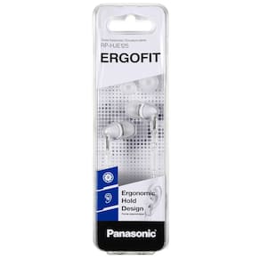 Panasonic RP-HJE125E-W - Fones de ouvido Ergofit Design - Fones de ouvido estéreo - Design Ergofit - Almofadas P/M/G - Impedância: 16 Ohms - 3. Plugue de níquel de 5 mm - Chaves de neodímio de 9 mm