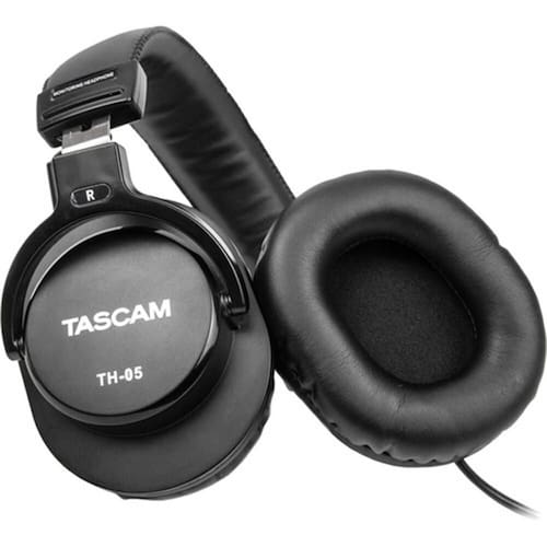 Fones de ouvido tascam th-05 monitoramento br Drivers de ímã de neodímio de 40 mm Protetores de ouvido leves e de alta qualidade Gira 180 Estrutura de aço inoxidável Faixa de cabeça de manganês para ajuste confortável Cabo banhado a ouro de 9,8' com plugue de 3,5 mm Inclui adaptador de 1/4 Bolsa de viagem de couro sintético preto