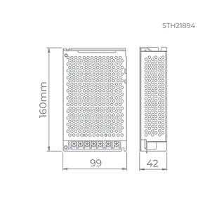 Características Gerais do Produto: • Referência: STH-21894 • Potência: 100 W • Tensão de Entrada: 100 - 240 V • Tensão de Saída: 12 Vcc • Corrente Máxima de saída: 8,3 A • Dimerizável: Não • Temperatura de Operação: -10 °C ~ 40 °C • Dimensões: 160 x 99 x 42mm • Material: Alumínio; Polímeros, Cobre e Componentes eletrônicos • Peso: 340g • Grau de Proteção: IP 20 • Garantia: 1 Ano