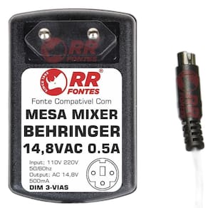Fonte compatível com mixer mesa de som behringer xenyx eurorack Ac 14,8vac 500ma x2, plug dim 3 vias, com chave de seleção de voltagem 110v/220v Atende os seguintes modelos; Mx-6 Ub1002fx, Ub1202fx, Xenyx 1002fx, Xenyx 1202fx Qx1002usb Qx1202usb Atenção; foto meramente ilustrativa Rrfontes Mxul6 Psu6-ul Marca: Não Informado