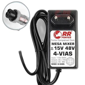 Fonte Universal Para Mixer Mesa De Som Com Power DC +15V -15V +48v 4 VIAS de Rosca Mike - Bivolt Mesas Compativeis Staner Mx0804 Efx Am M8 Fx Usb Amw Sm4 Amw Mx6 Pro 6 Canais Amw Sm8 8 Canais 17w Arcano Am-l4 L4 Arcano Aml7 Fx Arcano Arm Sbk Usb Arcano Arm8-fx 16dsp Arcano Arm-sbk Usb Jiaxi F7usb Lelong Le710 Le-710 Umy Brasil Mg 82cx Atende Varias Marcas, sendo 15v 48v e Conector Mike 4 Vias RRFONTES
