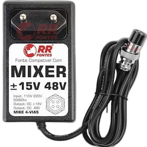 Fonte Universal Para Mixer Mesa De Som Com Power DC +15V -15V +48v 4 VIAS de Rosca Mike - Bivolt Mesas Compativeis Staner Mx0804 Efx Am M8 Fx Usb Amw Sm4 Amw Mx6 Pro 6 Canais Amw Sm8 8 Canais 17w Arcano Am-l4 L4 Arcano Aml7 Fx Arcano Arm Sbk Usb Arcano Arm8-fx 16dsp Arcano Arm-sbk Usb Jiaxi F7usb Lelong Le710 Le-710 Umy Brasil Mg 82cx Atende Varias Marcas, sendo 15v 48v e Conector Mike 4 Vias RRFONTES Marca: Não Informado