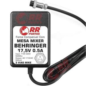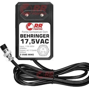 Fonte compativel com mixer mesa de som behringer eurorack Ac 17,5v 500ma bivolt com chave de seleção de voltagem 110v/220v Para os modelos; Eurorack mx1602 Eurorack mx1604a Eurorack mx802a Pro mixer dx100 Pro mixer dx500 Foto meramente ilustrativa Rrfontes