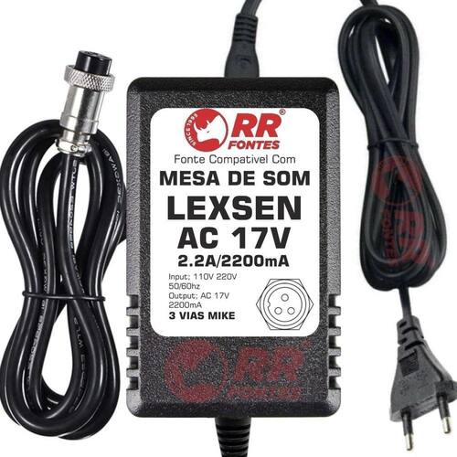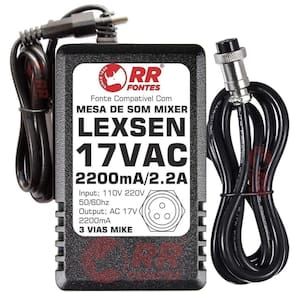 Fonte Compativel Com Mesa Som Lexsen PróAC 17V 2200mA Bivolt com chave de seleção de voltagem 110v/220vPm-16esM802fxM1202fxM1642fxM2442fxPro3242fx usbFOTO MERAMENTE ILUSTRATIVARRFONTES Marca: Rrfontes Comércios De Eletrônicos