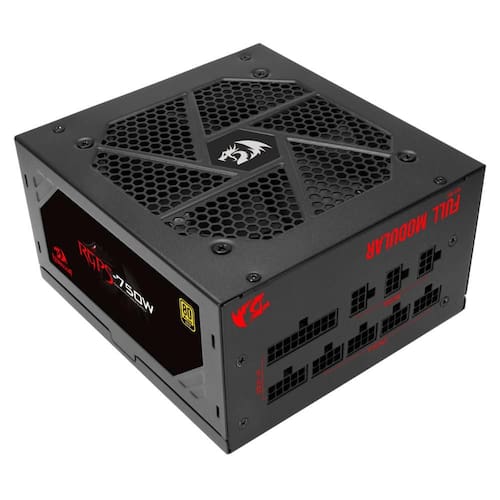 MarcaRedragonModeloGC-PS006-1CorPretoPotência750WCertificação80 Plus GoldModularidadeFull ModularPadrãoATX 2.3Ventilador120mm com iluminação RGBProteçõesOVP, UVP, SCP, OTP, OPP, OCPDimensões15016587mm (L x C x A)Saída +12V62ACabos24-pin ATX, 2x CPU 4+4, 2x PCIe 6+2, SATA, Molex