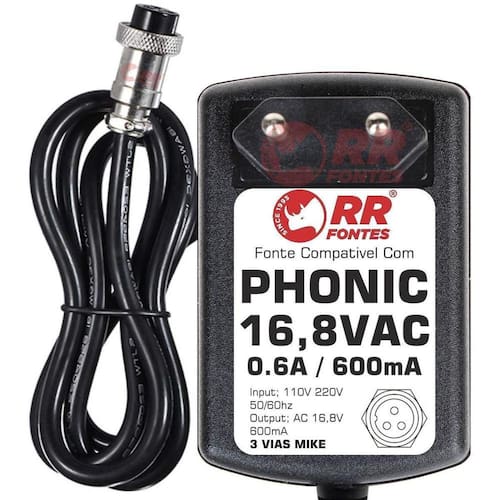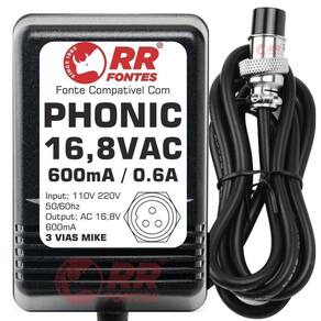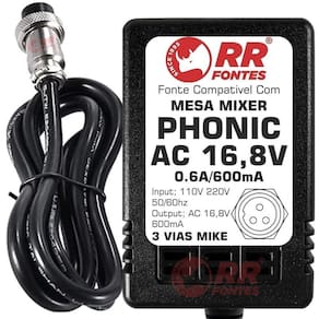Fonte compativel com mesa som phonicAc 16,8vac 600ma bivolt com chave de seleção de voltagem 110v/220vPhonic mu802Phonic mu1002Phonic mm1002Phonic mm1202aPhonic helix board 12Foto meramente ilustrativaRrfontes