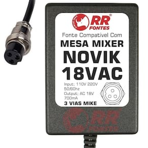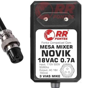 Fonte Ac 18V Para Mesa Mixer Novik Nvk Neo 802Fx 1202Fx 1602Fx Fonte compativel com mesa som novik nvk neo Ac 18vac 700ma bivolt com chave de seleção de voltagem 110v/220v Para; Nvk-802fx neo Nvk-1202fx neo Nvk-1602fx neo ----foto meramente ilustrativa---- Rrfontes Marca: Não Informado