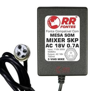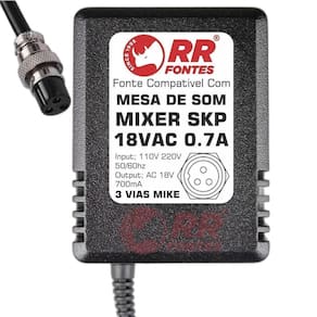 Fonte compativel com mesa som skp vz Ac 18vac 700ma bivolt com chave de seleção de voltagem 110v/220v Para; Vz-5 Vz-8fx Vz-6fx ----foto meramente ilustrativa---- Rrfontes Marca: Não Informado