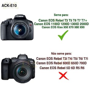 Fonte / adaptador ac compatível com ack-e10 para câmeras canon Nosso adaptador de energia é a solução ideal de alta qualidade, baixo custo com segurança e muita praticidade no uso de sua câmera dslr.Você utiliza sua câmera a maior parte do tempo em estúdio e está cansado de trocar a bateria Você precisa fazer lives / streamings por um período longo e sem pararVocê filma muito com sua câmera e a bateria acaba muito rápido Este produto é ideal para você É uma fonte / adaptador ac para câmeras canon que utilizam a bateria lp-e10. Permite utilizar a câmera ligada diretamente à energia elétrica, podendo utilizá-la por horas sem se preocupar com a bateria acabando.Proteção ativa: possui proteção contra superaquecimento, sobrecarga e proteção contra curto-circuito. Características:Pode ser utilizado com todas as câmeras que usam a bateria lp-e10Compatível com o adaptador ac ack-e10 da canonFicha técnica:Tensão de entrada: bivolt 110v e 220v Tensão de saída: 7.4v Corrente de saída: 2a Peso: 160gModelo: ack-e10Cor: pretoCompatível com as seguintes câmeras canon:Eos rebel t3 t5 t6 t7 t7+Eos 1100d 1200d 1300d 2000dEos kiss x50 x70 x80 x90Obs: caro cliente, oficialmente, a canon eos t100 não aceita nenhum tipo de fonte. Diferente dos outros modelos de câmeras da canon, a t100 não dispõe de um mecanismo que permite fechar a tampa do compartimento de bateria quando a fonte está ligada nela. Com isso, a câmera não liga. Muitas pessoas conseguem usar esta fonte com a t100, mas é necessário criar um mecanismo para enganar a câmera e ela achar que a tampa está fechada. Isso é possível pressionando um pininho, simulando a tampa fechada. Você pode testar com a sua bateria mesmo. Se conseguir ligar sua câmera com a tampa aberta de maneira satisfatória, apertando esse pininho sensor, poderá usar a fonte dessa mesma maneira.Conteúdo da caixa:1x fonte ca-ps700 cabo de 1,4 metros 1x adaptador dr-e10 = bateria lp-e10 1x cabo de energia com plug padrão brasil cabo de 1,2 metro Palavras chave: fonte ack-e10 adaptador alimentação dslr ac para canon eos rebel t3 t5 t6 t7 t7+ 1100d 1200d 1300d 2000d kiss x50 x70 x80 x90 adaptador substitui bateria para lives streaming studio Marca: Ringteam