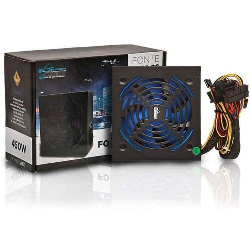 Especificações: - potência máxima de pico 450w - mtbf de 100.00 horas 25c - proteção contra curto circuito ovp/ocp/scp - chaveamento manual 110 / 230 vac - cooler de 120mm ultra silencioso - cabos com capa de proteção - normas técnicas iec60950 / iec61000 - 1 conector atx 20 + 4 pinos - 1 conector atx 12v - 3 conectores sata - 3 conectores ide - 1 conector fdd