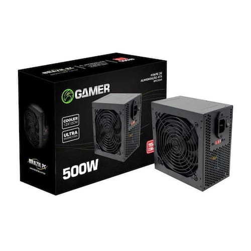 Fonte Atx 500watts Real Bpc-5330 Brazil Pc Especificações-marca: brazil pc-modelo: bpc/5330-bivolt: sim 115v-230v , manual-cooler: 12x12cm-potência: 500w Conexões:1 x alimentação 20 + 4 pinos1 x pci express 6 pinos1 x auxiliar atx 4 pinos2 x conectores ide4 x conectores de energia sataRef.110