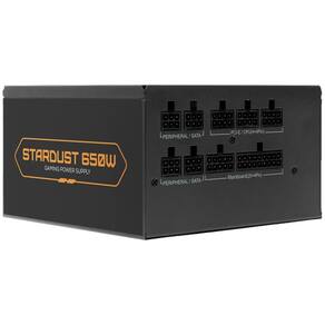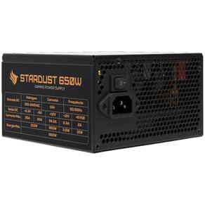 Fonte atx v3.0 pichau stardust 650w, full modular, cybenetics bronze, pfc ativo, bivolt 100-240v, preto - pg-st650-bk01 a fonte atx v3.0 pichau stardust 650w full modular é uma solução de energia eficiente e confiável, projetada para atender às demandas de setups gamers e sistemas de alto desempenho. Com certificação cybenetics bronze, ela oferece até 85% de eficiência energética, reduzindo desperdício de energia, calor e ruído. Equipada com pfc ativo e design full modular, permite conectar apenas os cabos necessários, garantindo organização e melhor fluxo de ar no gabinete. Suportando tensões bivolt automáticas 100-240v e compatível com o padrão atx 3.0, a stardust 650w entrega 650w de potência e inclui proteções robustas opp, uvp, ovp, scp, nlo, sip , assegurando segurança para os componentes do seu pc. Ideal para gamers e entusiastas que buscam desempenho, durabilidade e estética, esta fonte da pichau combina qualidade premium com custo acessível. Eficiência energética e certificação a certificação cybenetics bronze garante eficiência energética de até 85% em cargas típicas, minimizando desperdício de energia e reduzindo o calor gerado, o que contribui para maior durabilidade dos componentes e menor consumo elétrico. O pfc ativo correção de fator de potência otimiza a distribuição de energia, reduzindo flutuações de tensão e corrente, tornando a fonte mais segura e eficiente. A conformidade com o padrão atx 3.0 assegura compatibilidade com as mais recentes gerações de hardware, incluindo gpus e cpus modernas que exigem picos de energia elevados. Design full modular o design full modular permite conectar apenas os cabos necessários, facilitando a organização interna do gabinete e melhorando a ventilação. Os cabos possuem revestimento em malha mesh , garantindo maior durabilidade e estética. A fonte inclui conectores essenciais para setups gamers, como pcie 6+2 pinos para gpus, sata para ssds e hds, e eps 4+4 pinos para cpus, suportando configurações com placas de vídeo de médio a alto desempenho, como a nvidia rtx 3060 ou amd rx 6700 xt. Refrigeração silenciosa equipada com uma ventoinha de 120mm com rolamento hidráulico black silent, a stardust 650w opera a até 1800 rpm, proporcionando fluxo de ar de 58,6-71,6 cfm e pressão de ar de 1,6-2,5 mmh2o, com nível de ruído entre 29,5-36 dba. Isso garante um funcionamento silencioso mesmo em cargas elevadas, ideal para longas sessões de jogos ou trabalho intensivo. A ventoinha consome apenas 2,3-3w 5v-13,8vdc, 0,5a , contribuindo para a eficiência energética do sistema. Proteções de segurança a pichau stardust 650w inclui um conjunto abrangente de proteções elétricas: