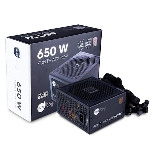 • Potência: 650W DC to DC • PFC: Ativo80 Plus Bronze • Tensão de entrada: 100-240V • Corrente de entrada: 8-4A • Freqüência de entrada: 50-60hz • Tamanho do ventilador: 120mm • Rolamento de ventilador: hdb • Velocidade do ventilador: 1500 rpm • Nível de ruído a 20%: 10,97 dBA • Nível de ruído a 50%: 10,7 dBA • Nível de ruído a 100%: 25.3 dBA • Eficiência: 85% normalmente • Classificação 80 plus: 80 plus bronze • Temperatura de operação: 40º C • Power good signal: 100-500ms • Tempo de espera: > 18ms a 100% carga total @ 230vac • MTBF: > 100.000 horas • Proteções: ovp, opp, scp, uvp, otp • Regulatório: ccc, ce, tuv-rh, rcm, eac, ctuvus, fcc, bsmi, kc, cb • CONECTORES • 1x Conector atx de 24 pinos • 1x Conector eps de 4 + 4 pinos • 1x Conector eps de 8 pinos • 6x Conectores SATA • 4x Conectores periféricos de 4 pinos • 2x Conectores pci-e 6 + 2 pinosVendido por VITORIA INFORMATICA e entregue por Extra